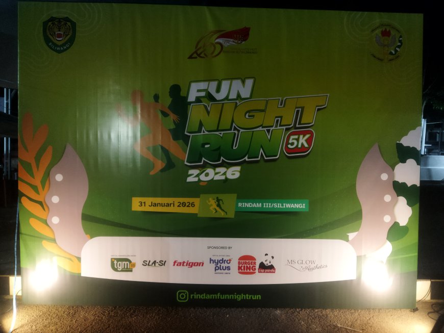 Bandung - Ribuan pelari dari berbagai komunitas dan kalangan turut ambil bagian dalam Rindam Fun Night Run 2026 yang digelar oleh Rindam III Siliwangi pada Sabtu, 31 Januari 2026. Kegiatan lari malam ini diselenggarakan dalam rangka memperingati Hari Ulang Tahun (HUT) ke-66 Rindam III Siliwangi tahun 2026.